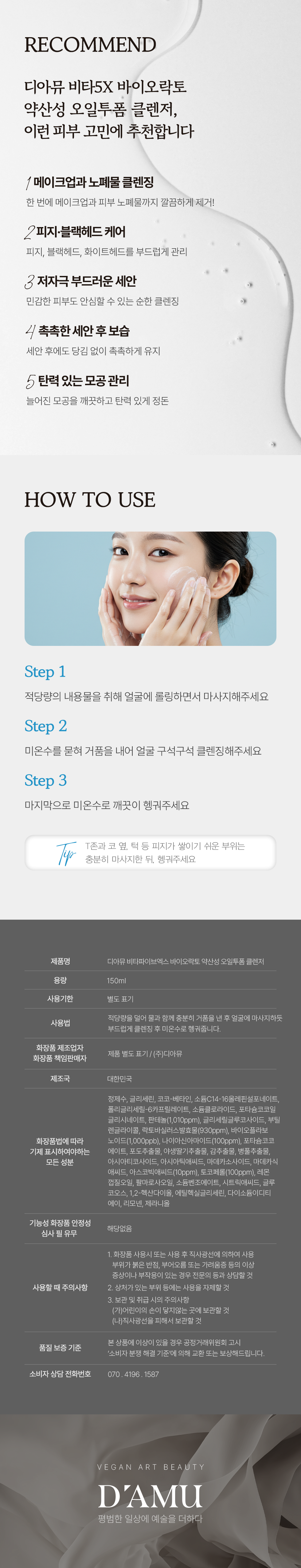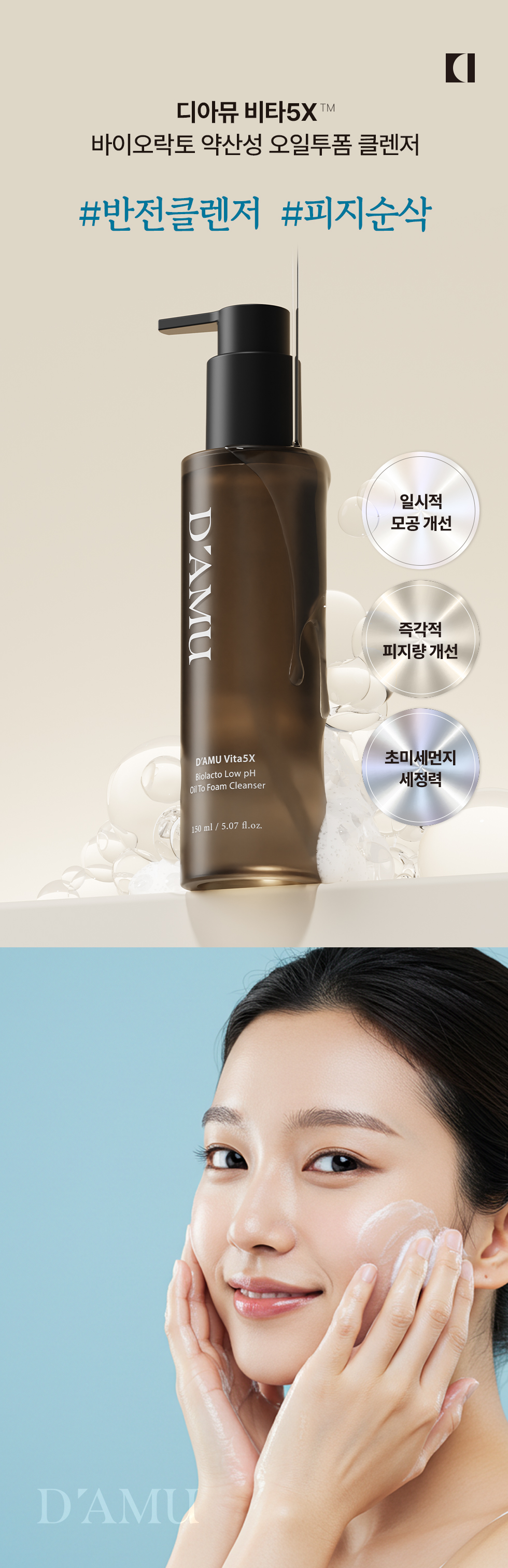 오일로 메이크업 잔여물을 말끔하게 클렌징하고, 거품으로 모공까지 깨끗하게 케어.
